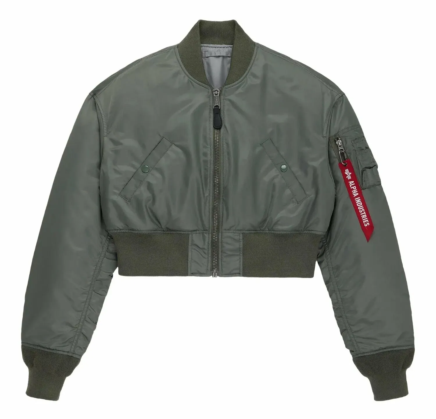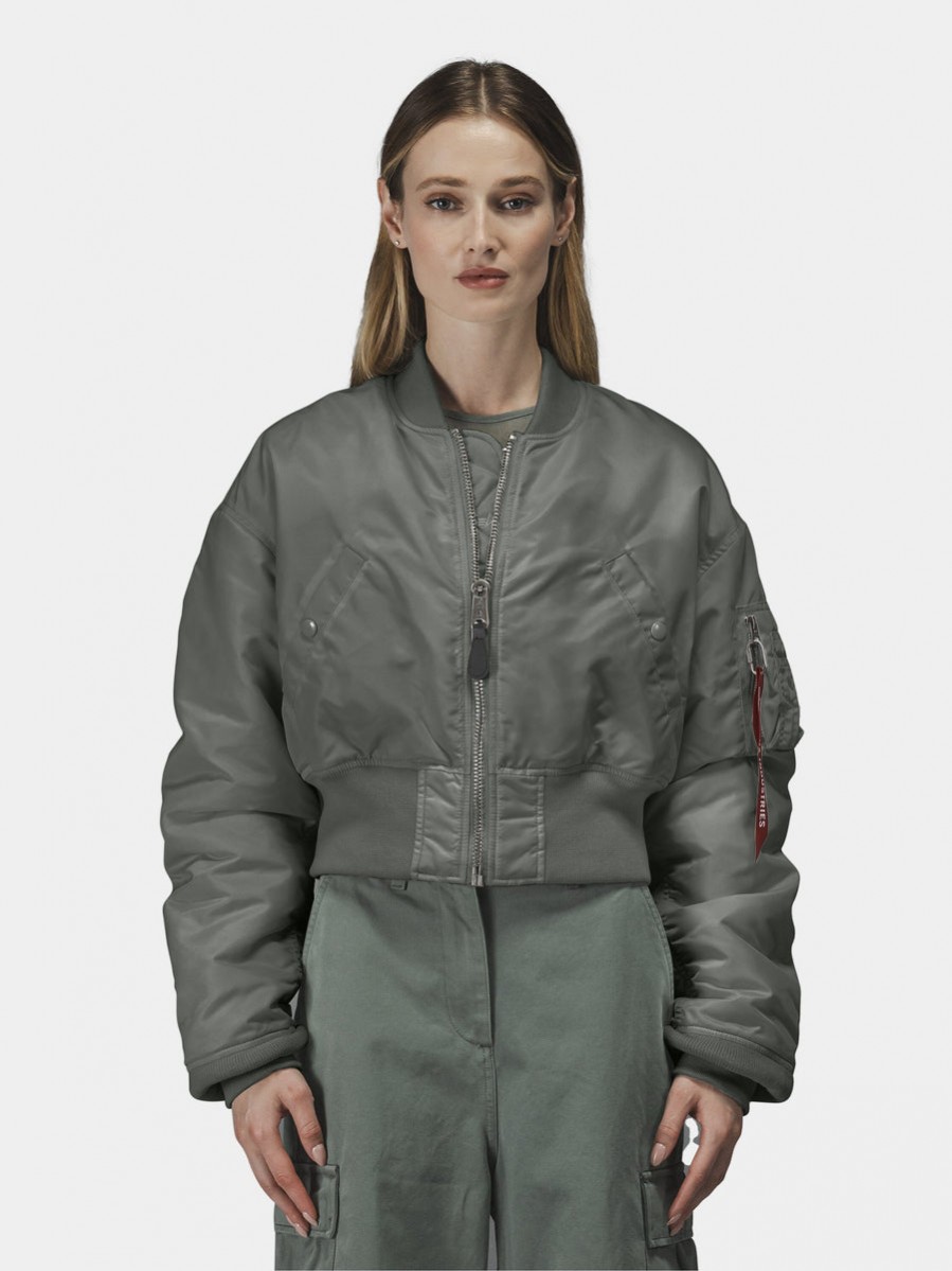 Бомбер Alpha Industries Cropped MA-1 W - женский укороченный бомбер, выполненный из прочного водоотталкивающего нейлона, утепленный полиэстером. Необычная версия классического демисезонного бомбера имеет длину до уровня талии, трикотажные манжеты, ворот и пояс и два внешних кармана на кнопках. На рукаве сервисный карман, в комплекте фирменный красный брелок-лента Alpha Industries.