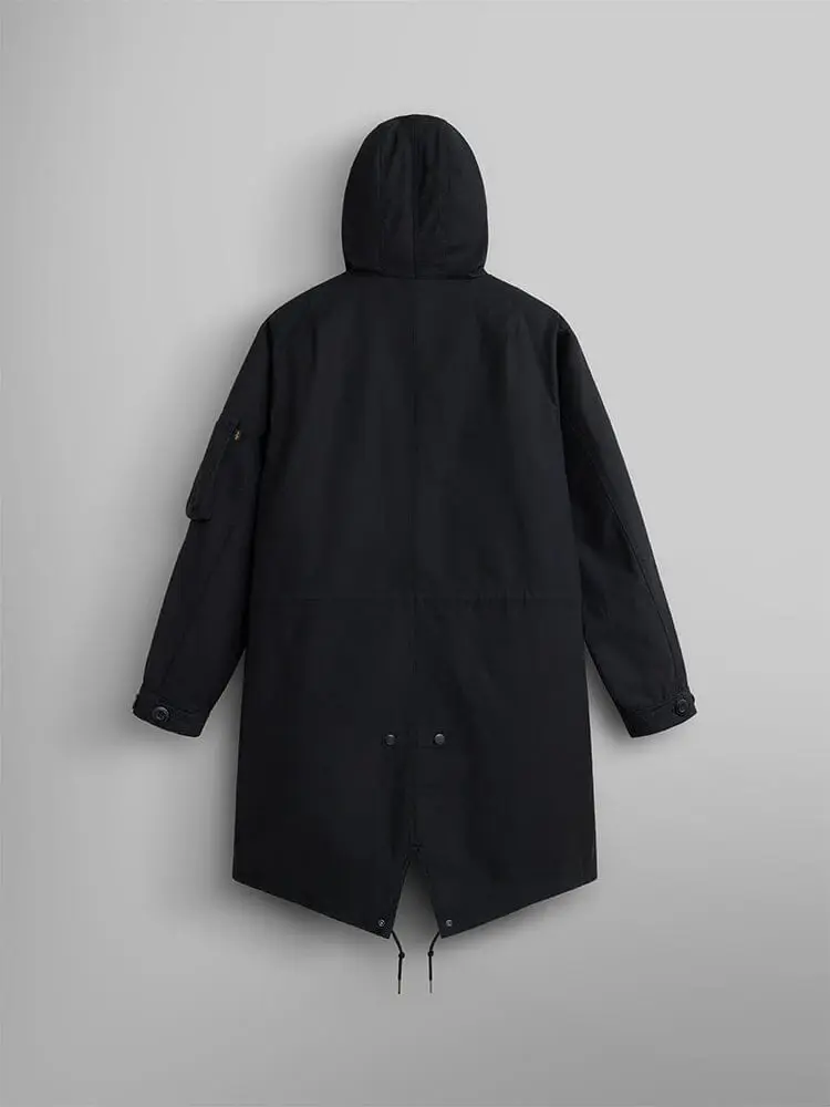 Куртка Alpha Industries M-59 Fishtail MOD Parka — удлиненная демисезонная куртка, выполненная из плотной смеси хлопка и полиэстера. Модель прямого кроя с кулиской на талии и снизу. Есть регулируемый несъемный капюшон с проволокой, застежка на молнии, боковые карманы, удлиненная спина "рыбий хвост". На рукаве классический сервисный карман с фирменной красной лентой Alpha Industries на карабине.